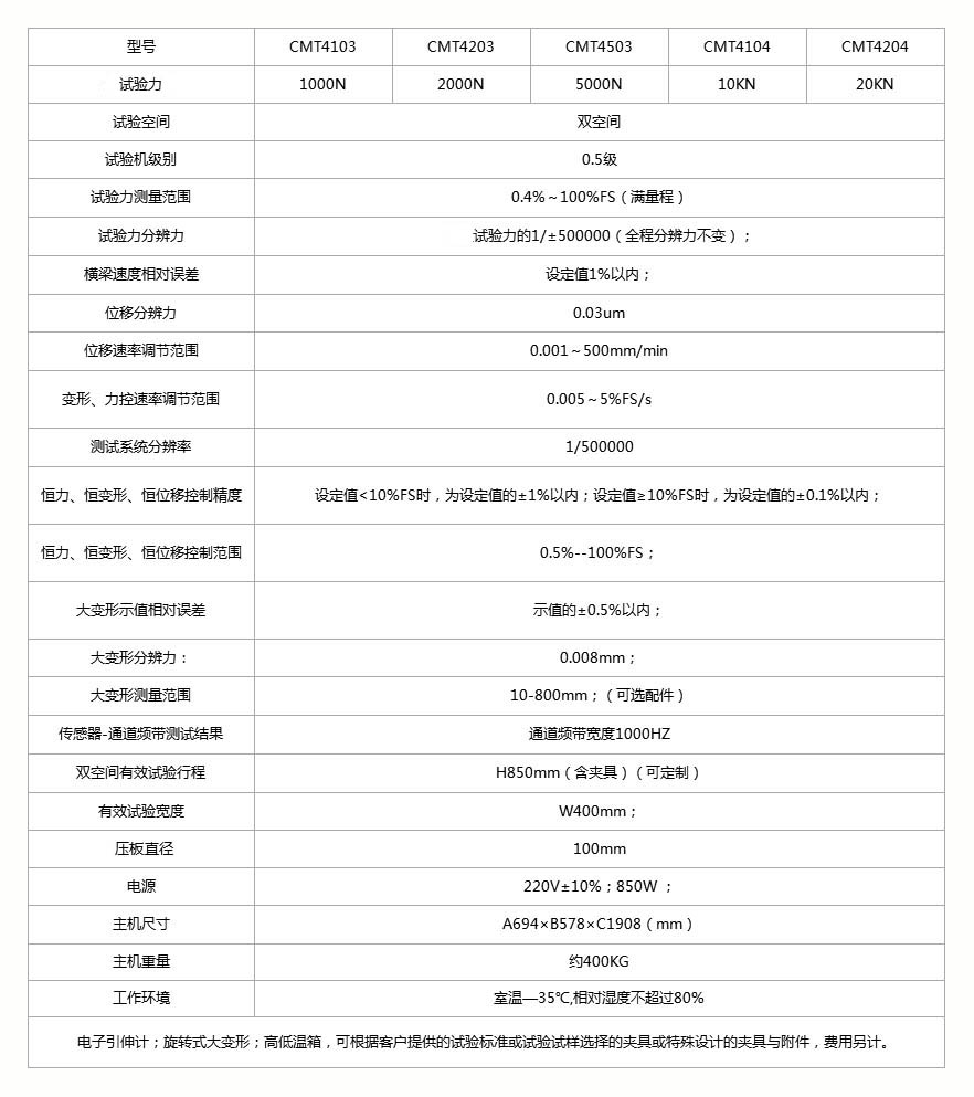 The main machine adopts a (single) double space structure, and the test space is up and down (down and down), which is mainly composed of a base and a rack. The base is made of cast iron, the frame is a portal structure, mainly composed of a bottom plate, upper, middle and lower beams and connecting light bars, etc. The beams are made of steel. A high-strength light bar is used to fix the upper beam and the work surface to form a high-rigidity structural frame.
