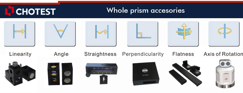 2. It can measure linearity, angle, straightness, perpendicularity and other geometrical parameters; It can measure the linear positioning accuracy and repeated positioning accuracy of guide rails for CNC machine tools, coordinate measuring machines and other precision motion equipments; It can measure the pitch angle, swing angle, perpendicularity and straightness of the guide rails, in addition it can calibrate rotary axis of machine tools.