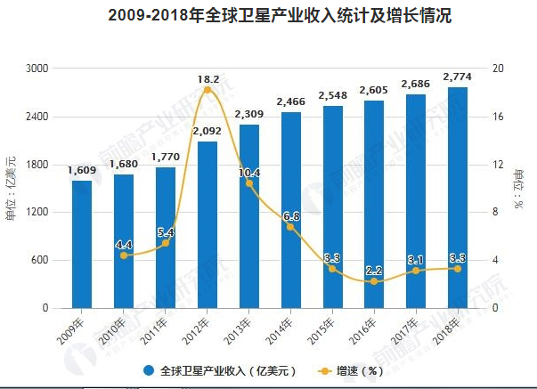 Revenue statistics and growth of global satellite industry (2009-2017) || Figure: Prospective Industry Research Institute