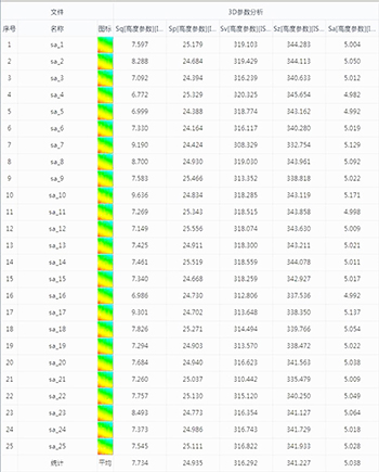 細磨片25次測量數(shù)據(jù)Sa曲線圖 | |