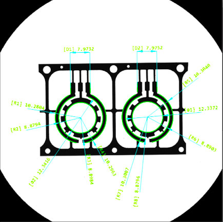 傳統(tǒng)測量儀器如投影儀、影像測量儀、工具顯微鏡、輪廓儀、游標卡尺、千分尺等,在測量時面臨諸多問題,如:測量對象的定位、原點定位費時,批量測量操作時間長,不同測量人員導致測量結(jié)果不同,數(shù)據(jù)統(tǒng)計管理繁雜等。